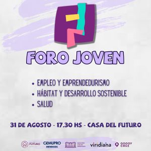 Este viernes 1 de septiembre se realizará la edición 2023 del Foro Joven. La cita es a partir de las 17.30 en la Casa del Futuro, Sarmiento 2291 de Godoy Cruz.